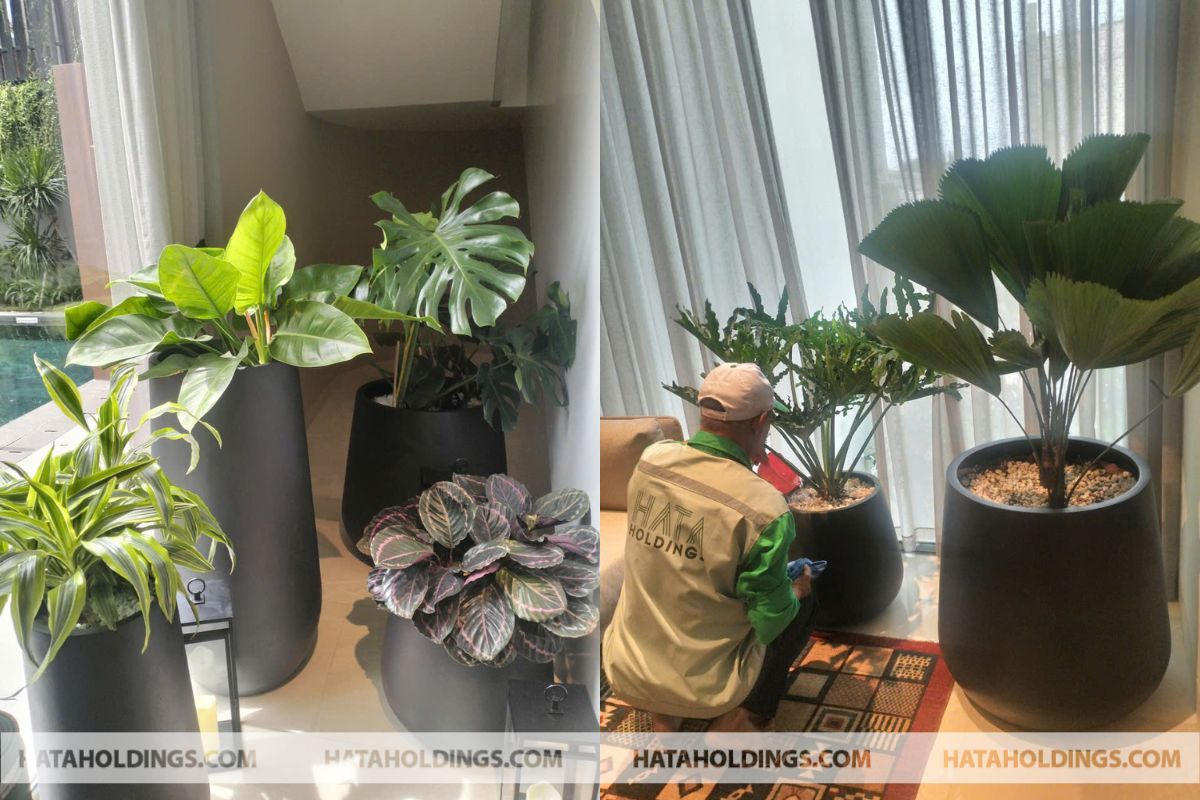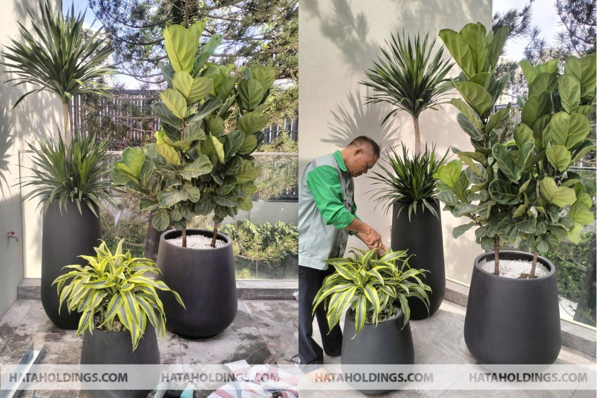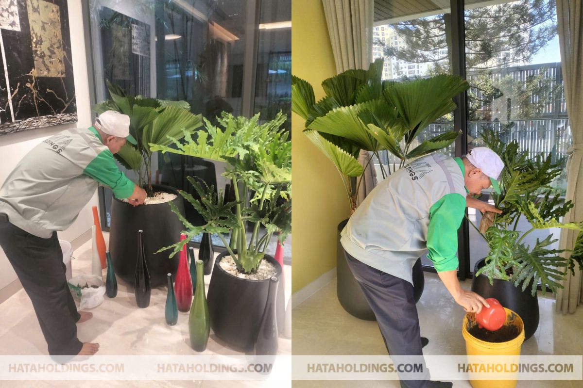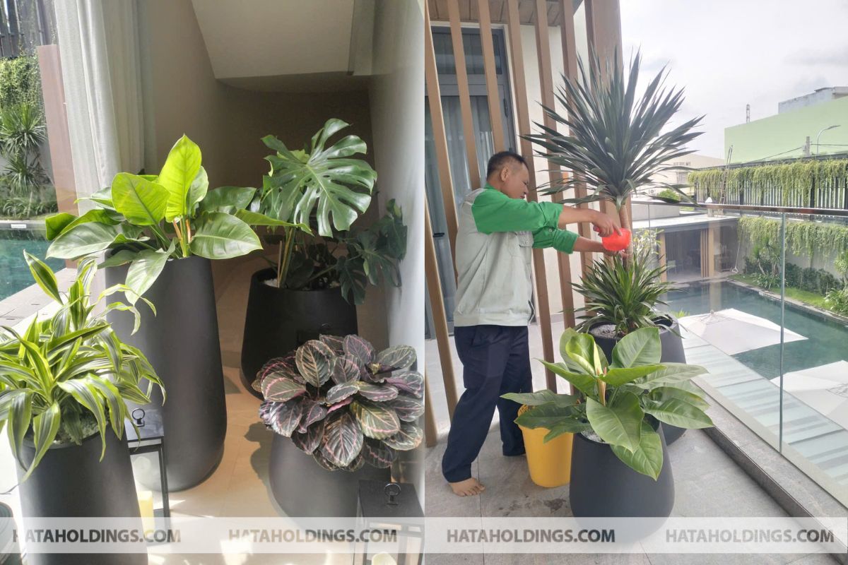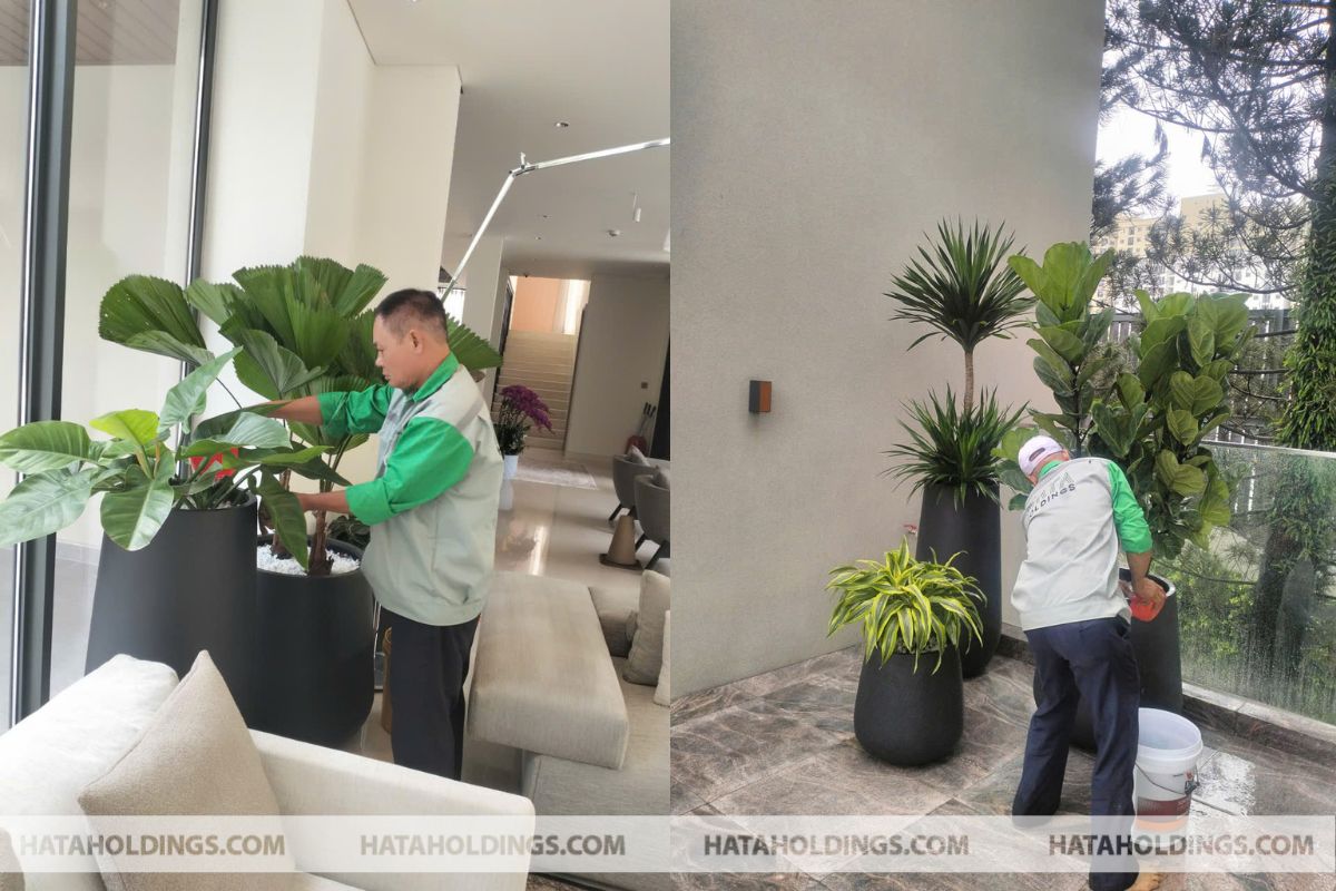 Đội ngũ HATA tỉ mỉ chăm sóc từng gốc cây để giữ trọn vẻ đẹp và sức sống, mang đến sự an tâm cho khách hàng khi sử dụng dịch vụ.