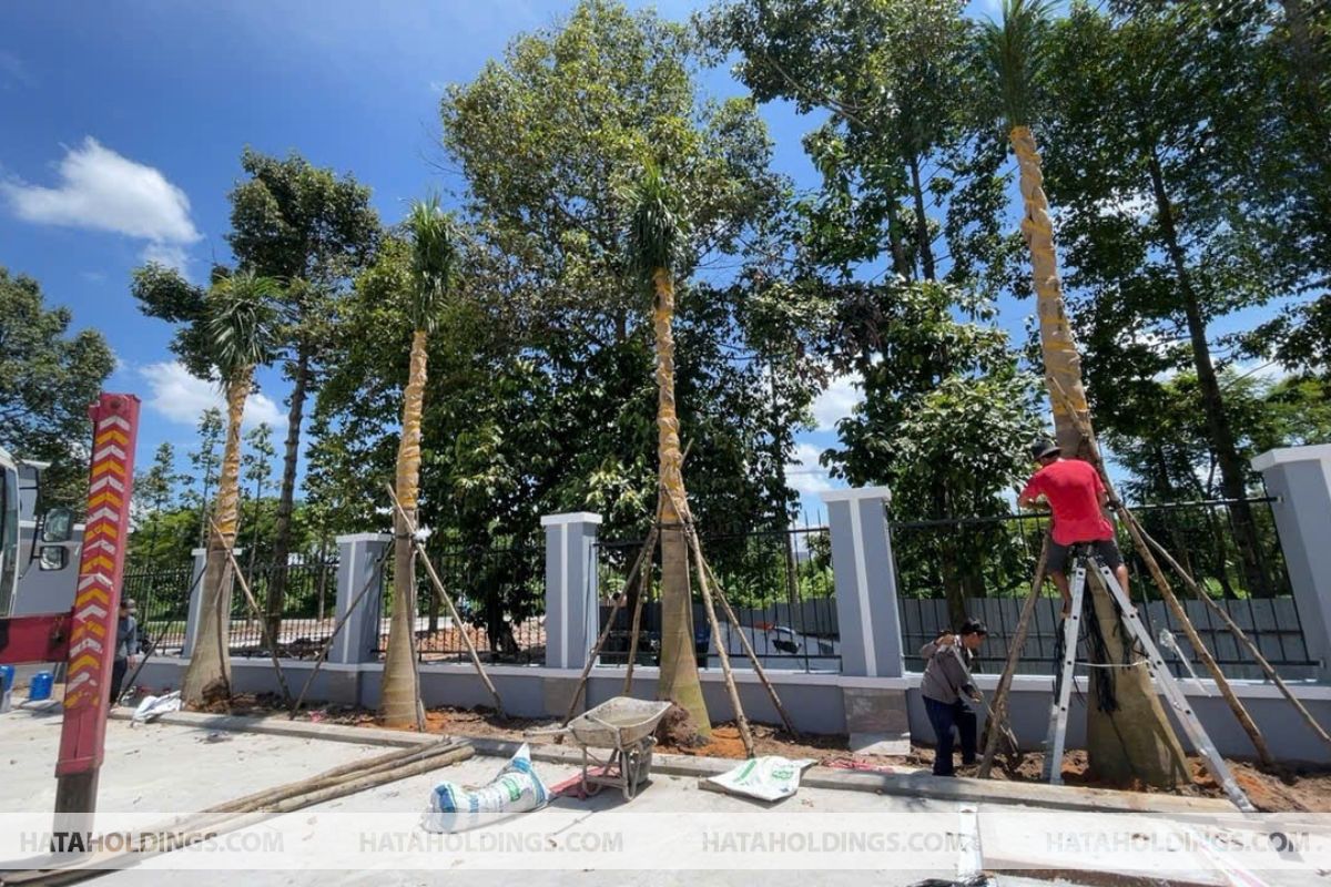 HATA thi công trồng hàng cây lớn dọc khu vực tiền sảnh – tạo điểm nhấn xanh cho không gian nhà khách