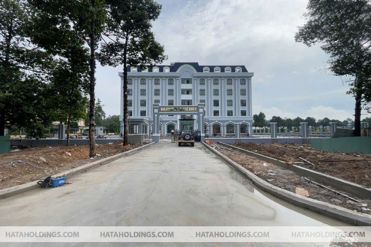 Hiểu rõ yêu cầu về tính thẩm mỹ và sự chuẩn mực trong không gian quân đội, HATA đã thiết kế phương án thi công đảm bảo đồng thời hai yếu tố: trang trọng và sinh động. Hạng mục bao gồm trồng các hàng cây lớn tạo điểm nhấn dọc khu vực tiền sảnh, mang đến cảm giác bề thế và cân đối cho tổng thể kiến trúc. Cùng với đó là việc phủ thảm cỏ tại các khoảng sân và lối đi, mang đến màu xanh mướt mịn, giúp không gian trở nên mềm mại và dễ chịu hơn.